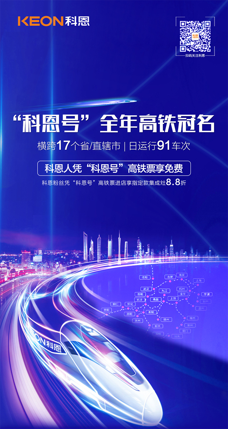 一列列品牌冠名高鐵縱橫馳騁,匯集了來自全國各地人群,產(chǎn)生著強(qiáng)大的品牌引領(lǐng)效應(yīng)。集成灶十大品牌、廚電行業(yè)十大品牌“科恩號(hào)”高鐵專列正式運(yùn)行,橫跨17個(gè)省/直轄市,日運(yùn)行91車次!科恩集成灶啟動(dòng)全年高鐵冠名,通過中國高鐵完善的平臺(tái)搭建,實(shí)現(xiàn)渠道共享,與品牌進(jìn)行無縫嫁接,成功開啟輻射全國的品牌戰(zhàn)略布局,將品牌觸角延伸至高鐵,借助高鐵國家名片屬性為品牌權(quán)威背書,傳遞至大江南北,讓“集成灶就選科恩大吸力”口號(hào),借助高鐵速度、廣度以及深度,更精準(zhǔn)地推向全國市場(chǎng)!