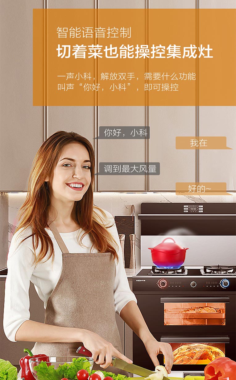 另外,科恩E450上下蒸烤集成灶還搭載智能語音控制,“你好小科”輕松掌控集成灶,大吸力無油煙,能蒸善烤美味雙收,一次性給你滿漢全席。這個冬天,安排一下集成灶十大品牌、廚電行業(yè)十大品牌科恩E450上下蒸烤集成灶,解放雙手,暖心又暖胃!