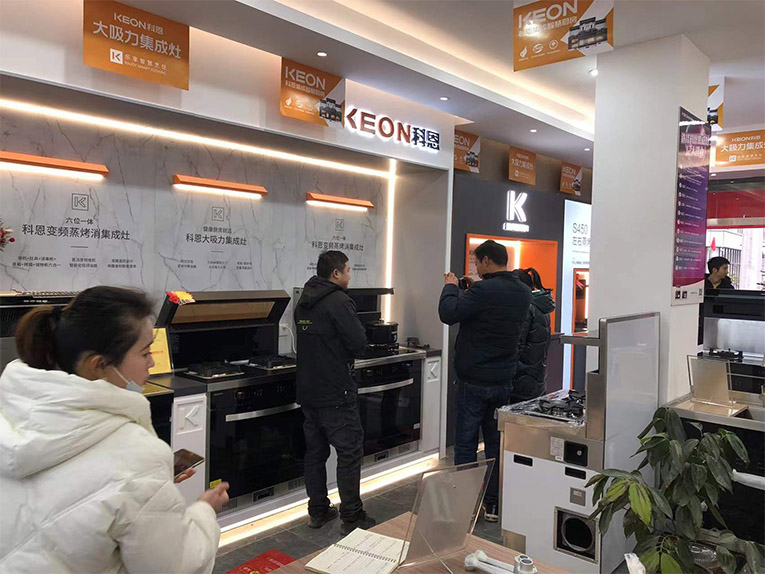 科恩西鄉專賣店融入了科恩全新新門店形象,優雅的環境、火爆的氛圍、精心準備的禮品,無一不彰顯著科恩集成灶的強大品牌實力。