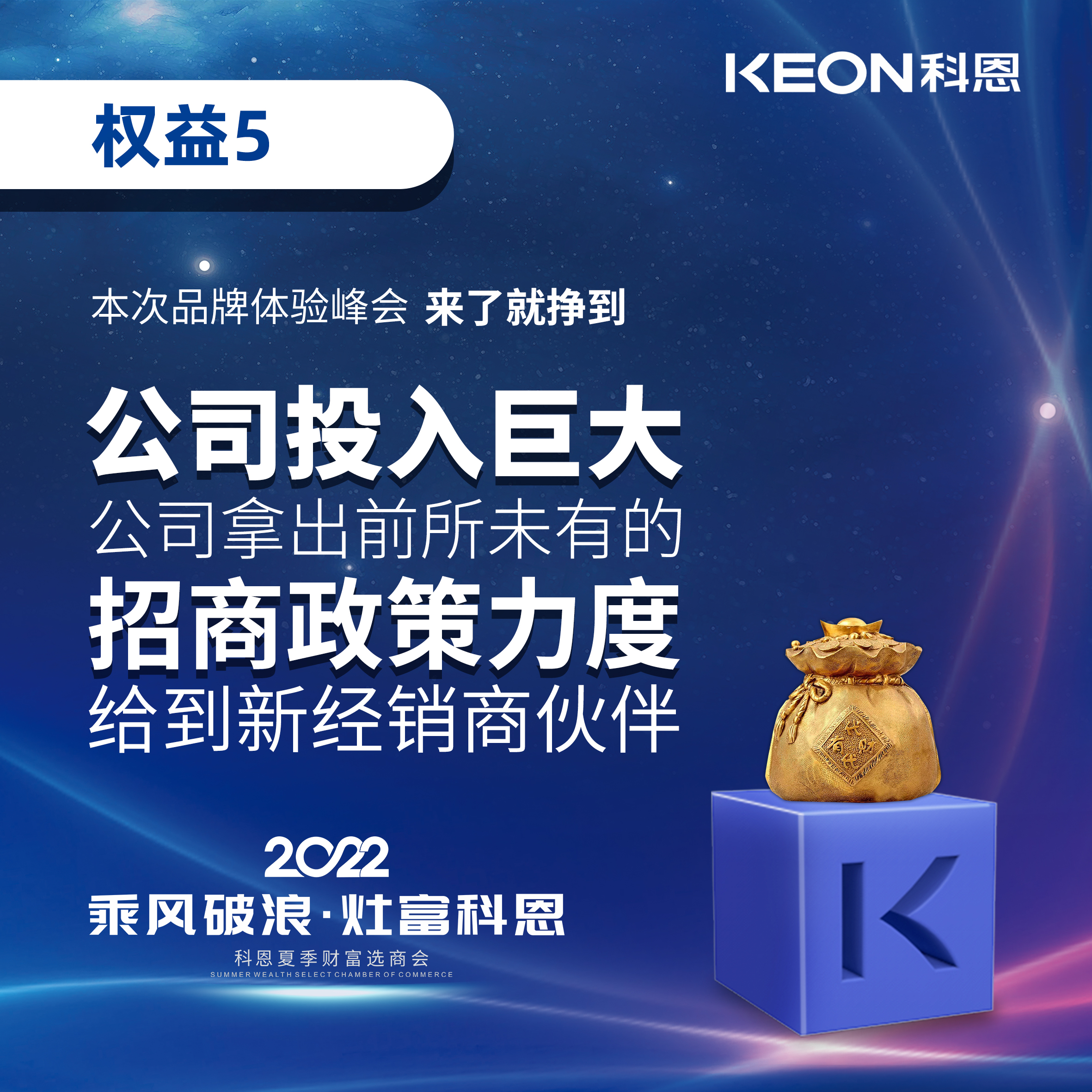 權(quán)益四、科恩電器重金打造本次品牌體驗峰會,不僅招商政策優(yōu)渥,更有多項福利加持: