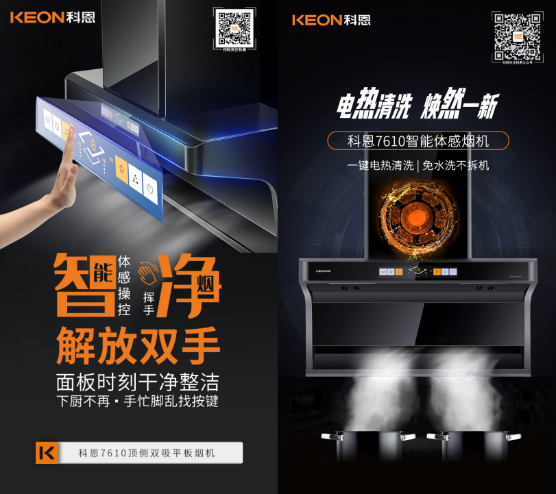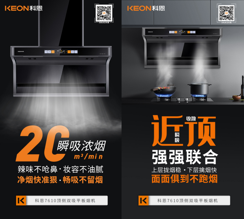 科恩7610頂側(cè)雙吸體感煙機,高效凈煙無所懼!