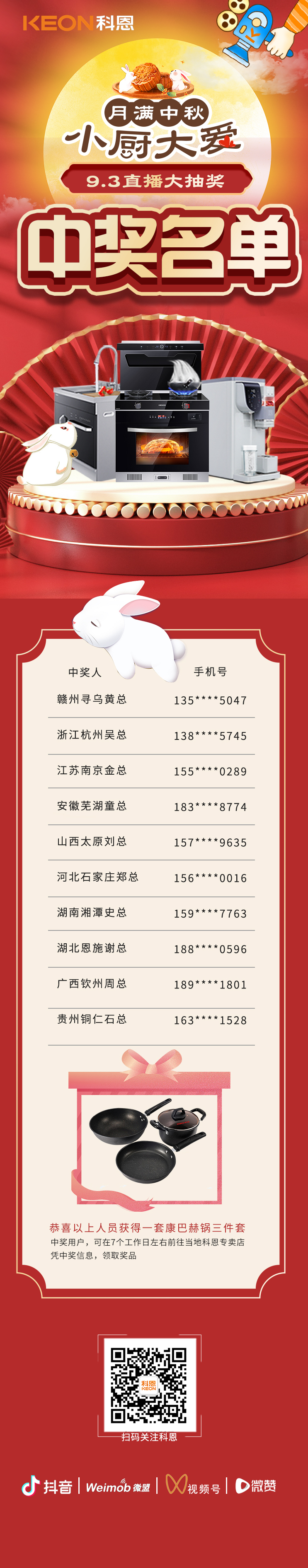 科恩家裝廚電節第二期月餅DIY直播獲獎名單出爐啦!