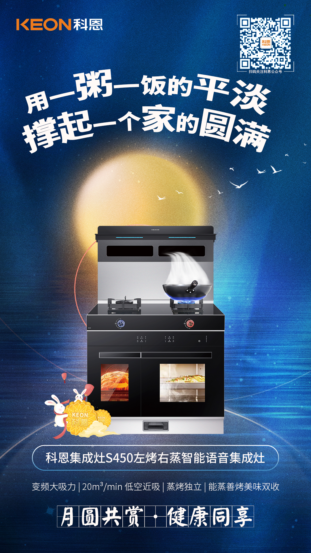 不敷衍食物,不敷衍生活,不辜負時光。用一臺科恩S450左烤右蒸智能語音集成灶,智能變頻巡航系統、20m3/min低空近吸,解除油煙阻礙,讓美食包裹在愛的海洋中,構造出屬于自己的王國,用一粥一飯的平淡,撐起一個家的圓滿。