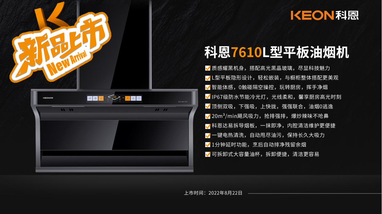 科恩集成智慧廚房—— 7610頂側雙吸平板煙機