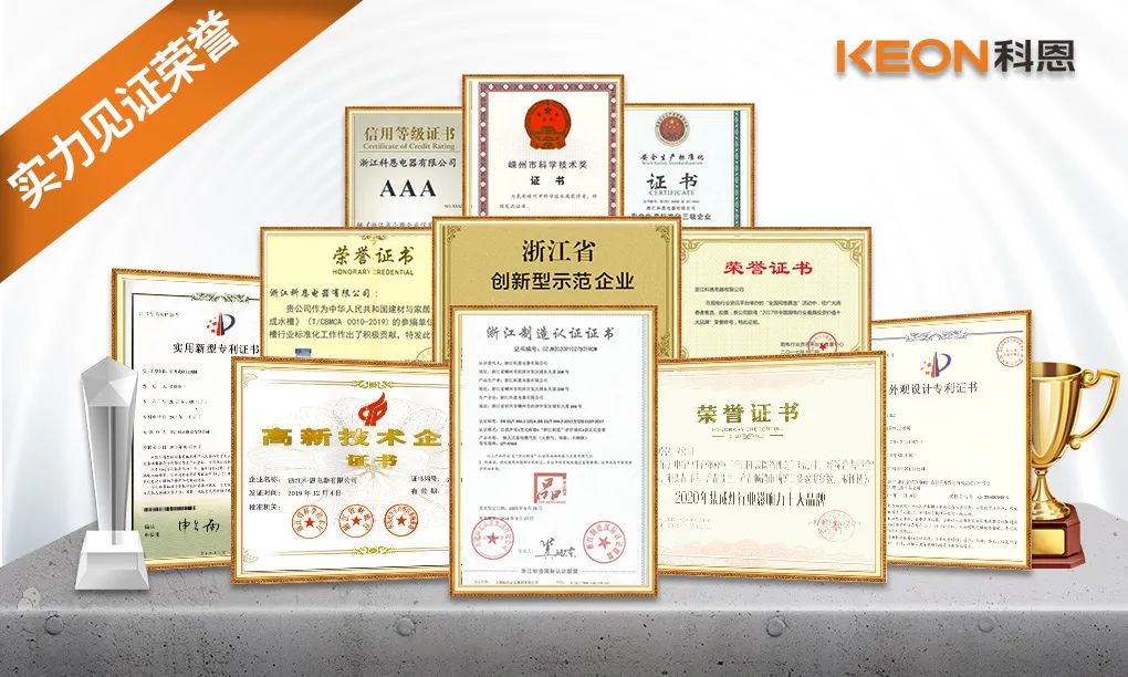 品質彰顯,載譽前行!科恩電器始終以匠心鑄就品牌榮耀勛章,用品質獲得了行業和消費者的普遍認可,擁有高新技術企業、專利示范企業、集成灶十大品牌、集成水槽十大品牌、行業國標起草單位、高效凈化環保之星、CNAS認可實驗室、浙江制造標準起草單位、集成灶團體標準起草單位、建材與家居專業標準《集成水槽》參編企業等榮譽。并擁有百余項專利技術認證,參與并起草多項標準,為行業的技術研發提供數據支撐,一個個的榮譽背后,見證著科恩贏得了眾多消費者的信賴與支持。