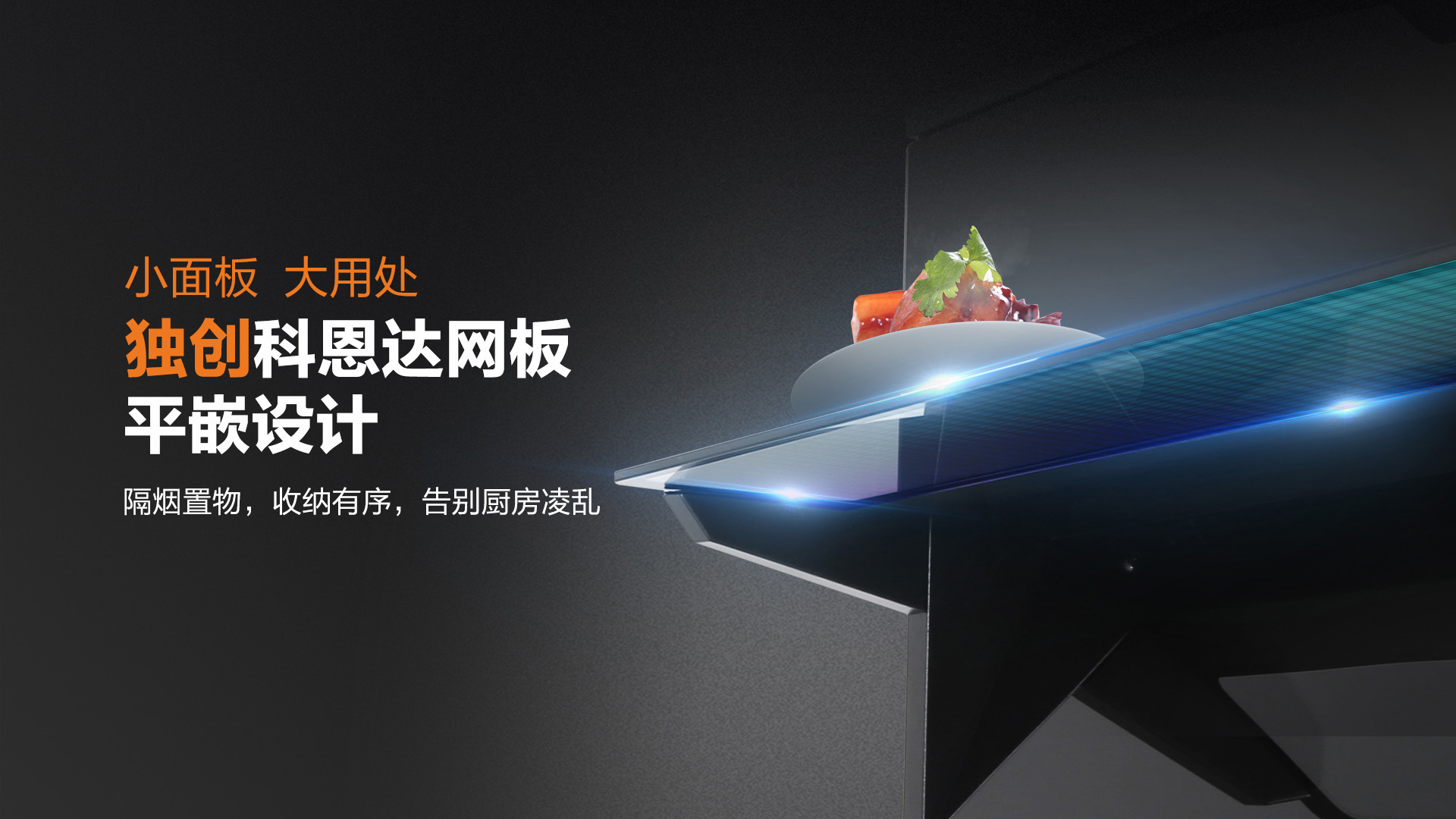 特制的導(dǎo)煙置物板,更是阻絕油煙向上跑的可能,徹底做到油煙不過臉。且在導(dǎo)煙同時,還能置物,烹飪時隨手置放的調(diào)味品有了好去處!
