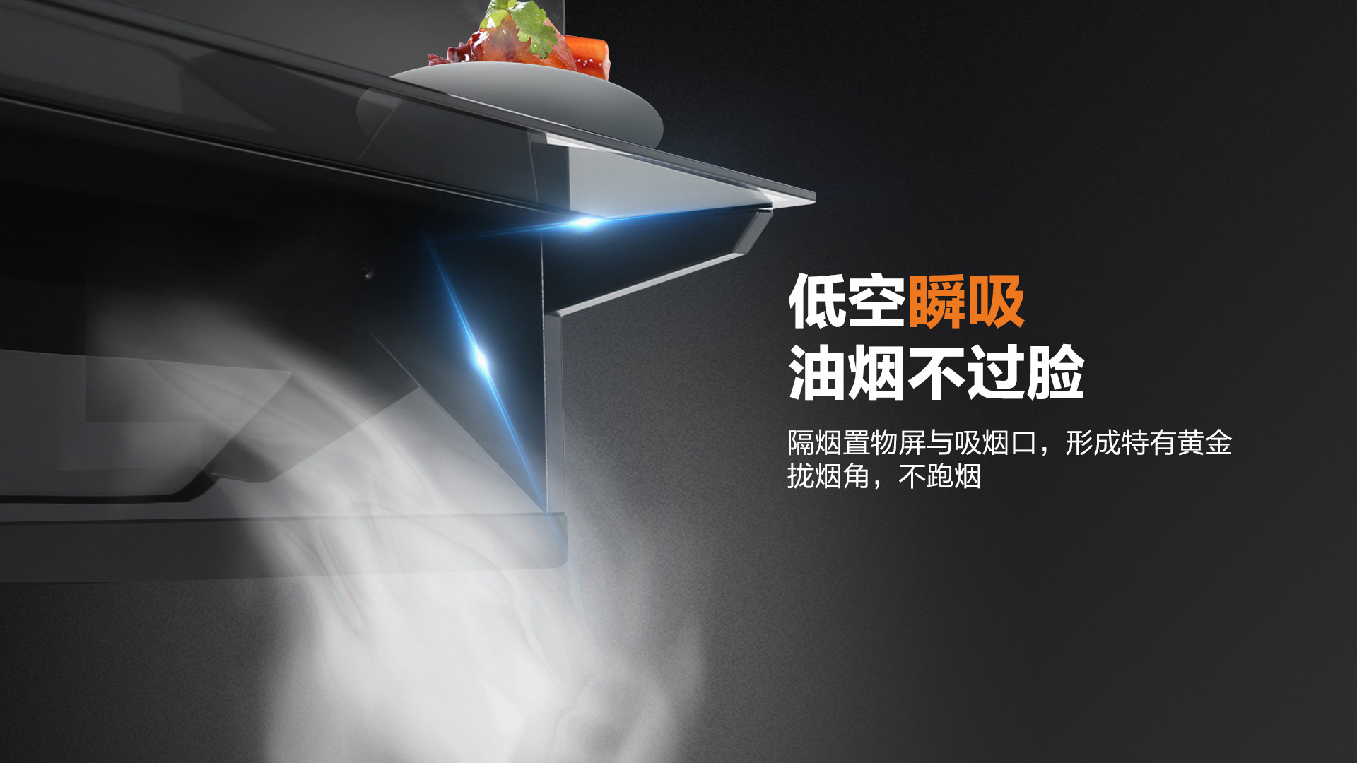 揮手開關(guān)機,面板不留痕,智能體感操控,揮手凈煙,0觸碰隔空操控,廚房更潔凈!