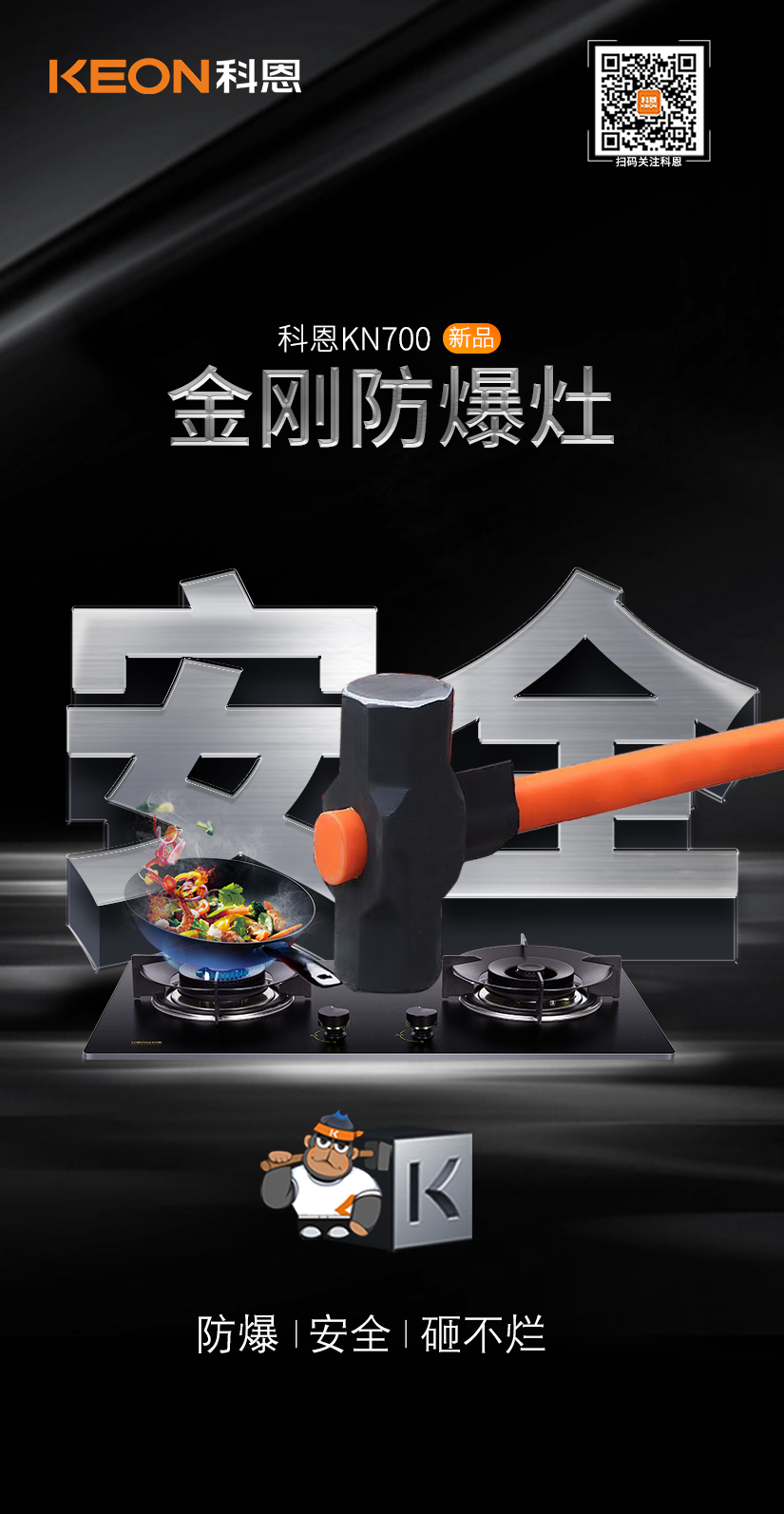 如何讓國民廚房更安全?科恩研發了金剛防爆灶,采用硅碳合金板,不僅抗沖擊更可耐高溫1500℃,為國人廚房生活樹立起堅固的安全屏障!