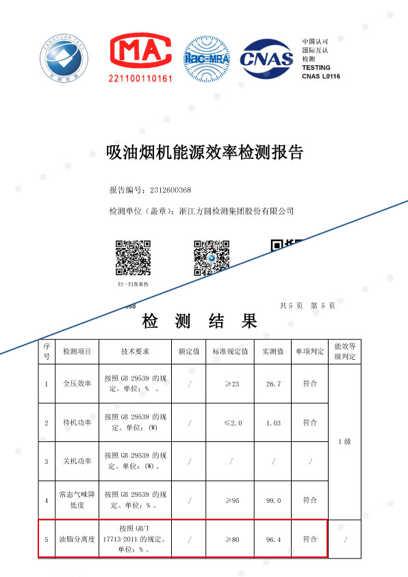 國標之上,油煙分離達到96%!