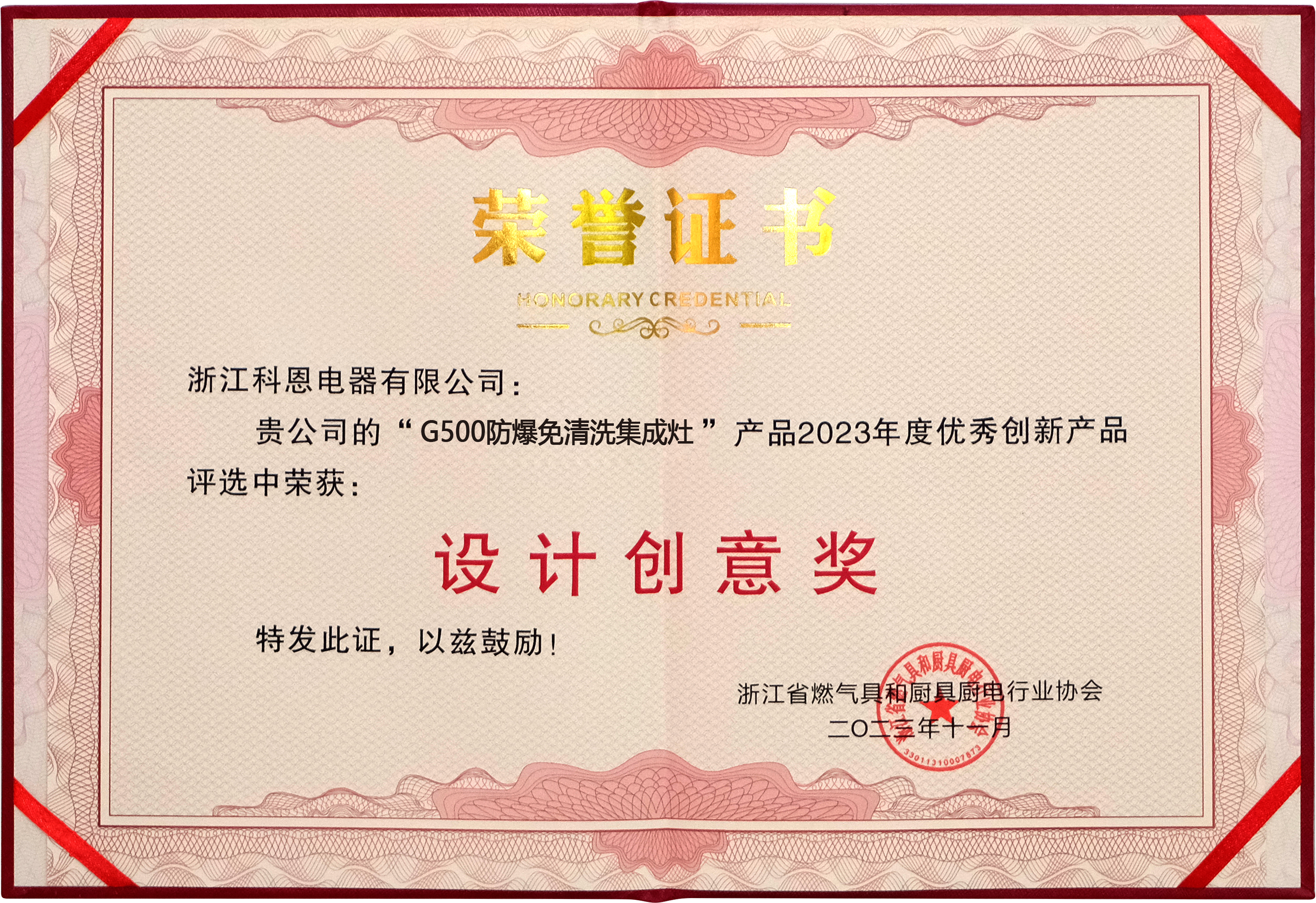 同時,科恩KN700防爆金剛灶、G500防爆免清洗集成灶更是榮獲“設計創(chuàng)意獎”!KN700防爆金剛灶、G500防爆免清洗集成灶均為2023年科恩拳頭產(chǎn)品!