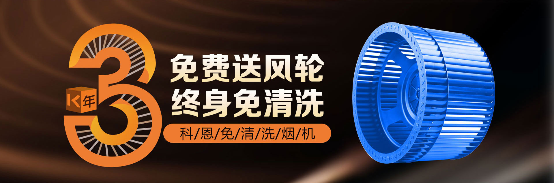 科恩電器行業(yè)率先提出3年免費送風(fēng)輪服務(wù),徹底解決殘余油脂油污問題,真正實現(xiàn)煙機終身免清洗!