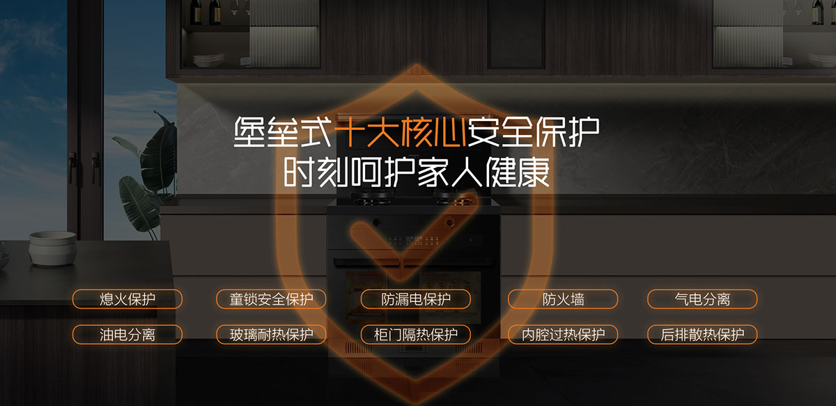 堡壘式十大核心安全保護(hù),時(shí)刻呵護(hù)家人健康(熄火保護(hù)、童鎖安全保護(hù)、防漏電保護(hù)、防火墻、氣電分離、油電分離、玻璃耐熱保護(hù)、柜門隔熱保護(hù)、內(nèi)腔過(guò)熱保護(hù) 、后排散熱保護(hù))