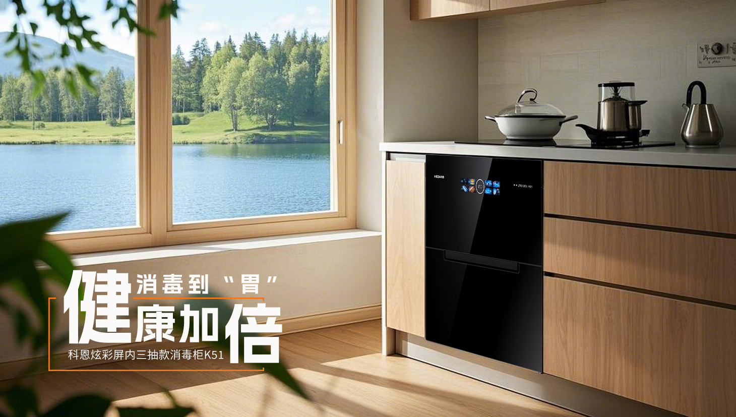 回南天+雨季的雙重暴擊,濕度拉滿警報(bào),剛洗的玻璃杯凝滿水珠,木筷三天冒霉斑,連不銹鋼勺都裹上了一層黏膩。當(dāng)廚房淪為”返潮重災(zāi)區(qū)“,普通消毒柜?治標(biāo)不治本,刀叉縫里的黑斑,奶瓶口的殘留,在你看不見的角落瘋狂繁殖。科恩藍(lán)盾衛(wèi)士系列消毒柜重磅來襲,K50簡約款,K51尊享款,K52時(shí)尚款三款消毒柜供你選擇,消烘存三體聯(lián)動(dòng),讓細(xì)菌無處遁形。