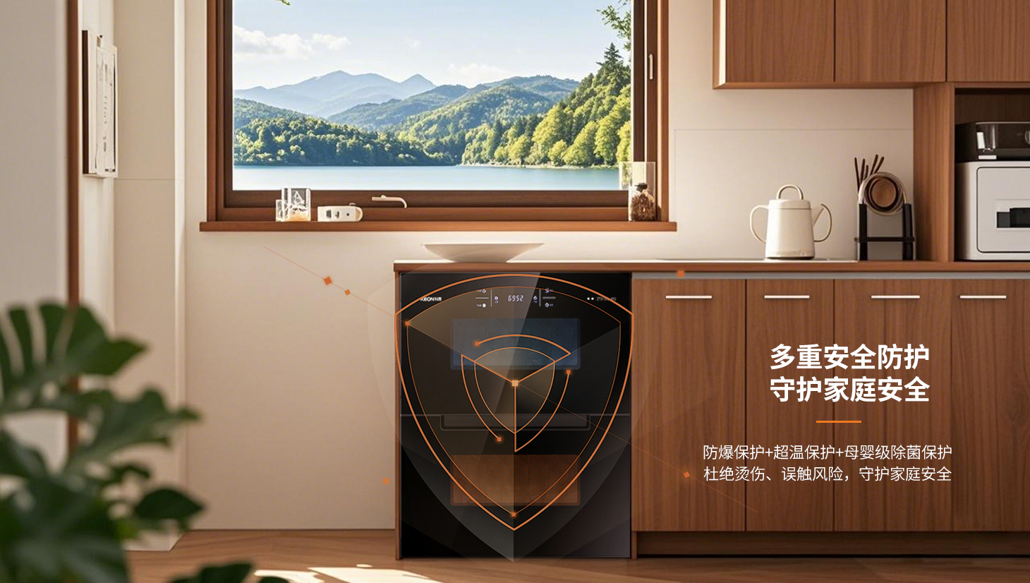 隱藏式拉手,平嵌設(shè)計(jì),不占空間防磕碰,提升廚房空間利用率。上層紫外線輕消毒,精準(zhǔn)殺滅表面細(xì)菌,下層遠(yuǎn)紅外高溫滅菌,消滅99.99%常見病菌。遇上回南天也不用擔(dān)心,保持餐具干爽又清新,守護(hù)全家的健康安全!