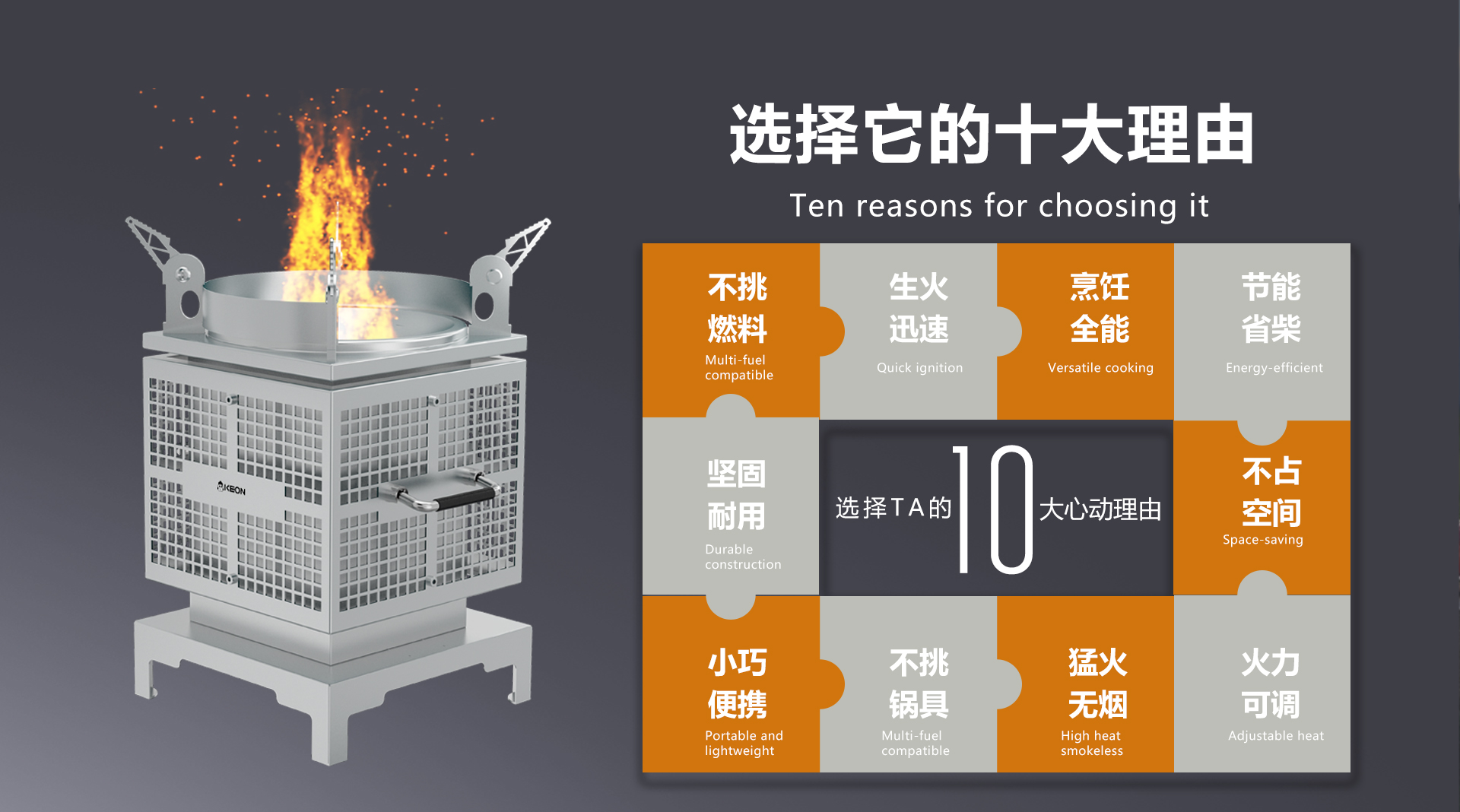 無煙猛火暢享秋味不銹鋼鏤空支撐腳,內收折疊,穩固承重,近郊野餐效率,S12速烹超給力重新定義野炊法則,攜科恩火箭爐S12,來一場秋日短途出行輕便與實用全都擁有一機打造移動米其林廚房。