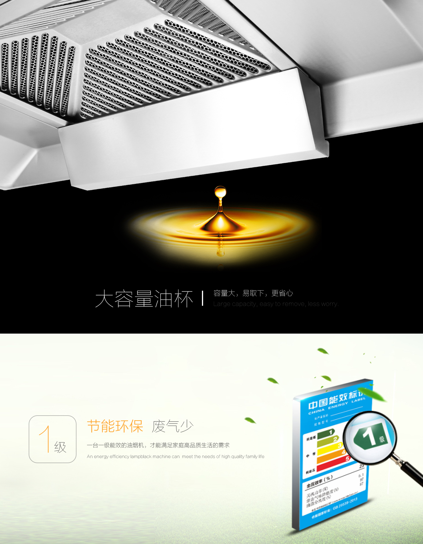 全腔900MM攏煙區,比普通煙腔更寬更深,有效鎖住油煙不外溢。