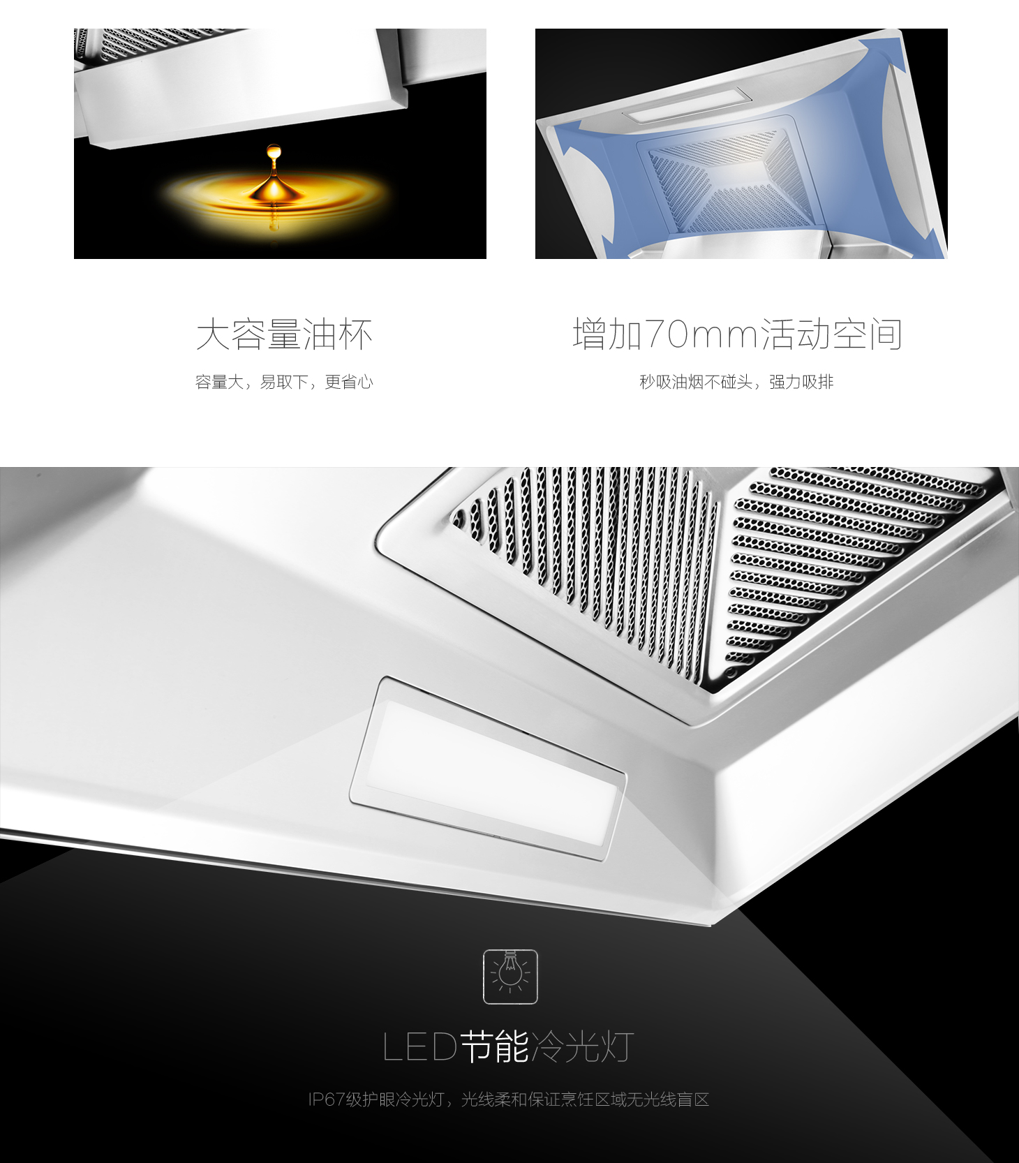 增加70mm活動空間,秒吸油煙不碰頭。