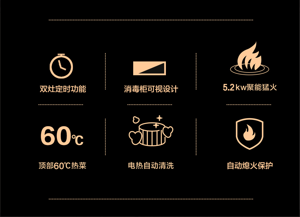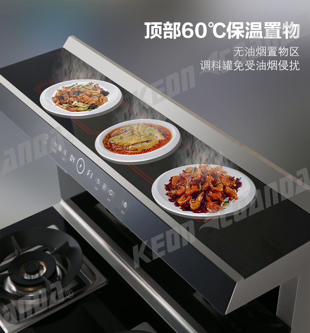 • 頂部60℃保溫置物功能,無油煙置物區(qū),調(diào)料罐免受油煙侵?jǐn)_