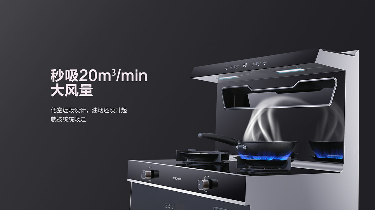 • 低空近吸技術(shù),緊鎖升騰油煙不上臉,吸煙快人一步,油煙無處可逃