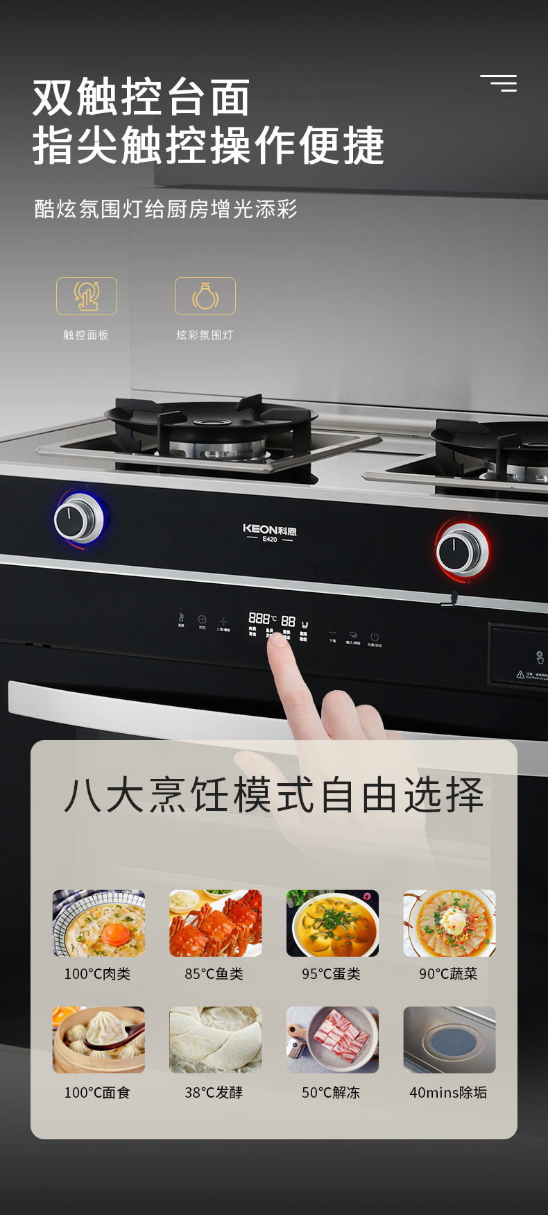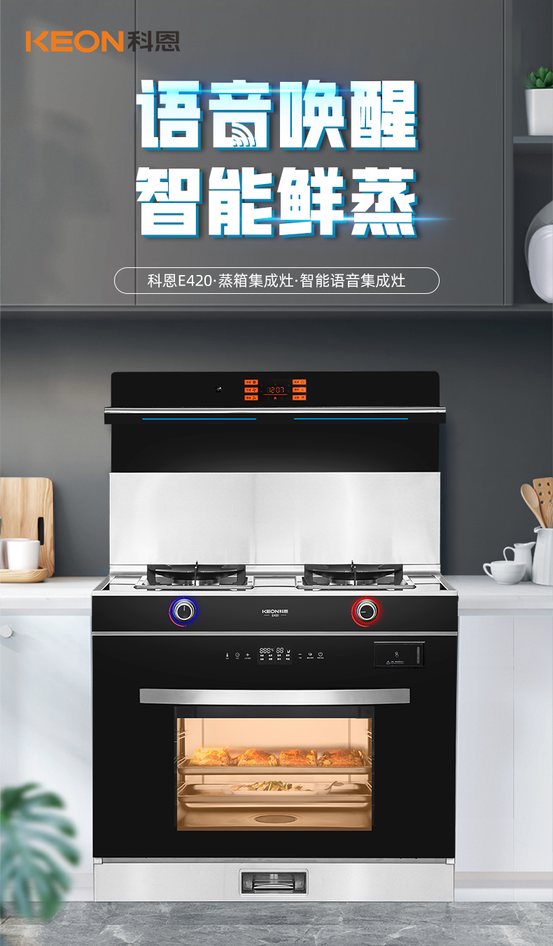 - 語音喚醒,智能鮮蒸,科恩E420智能語音集成灶