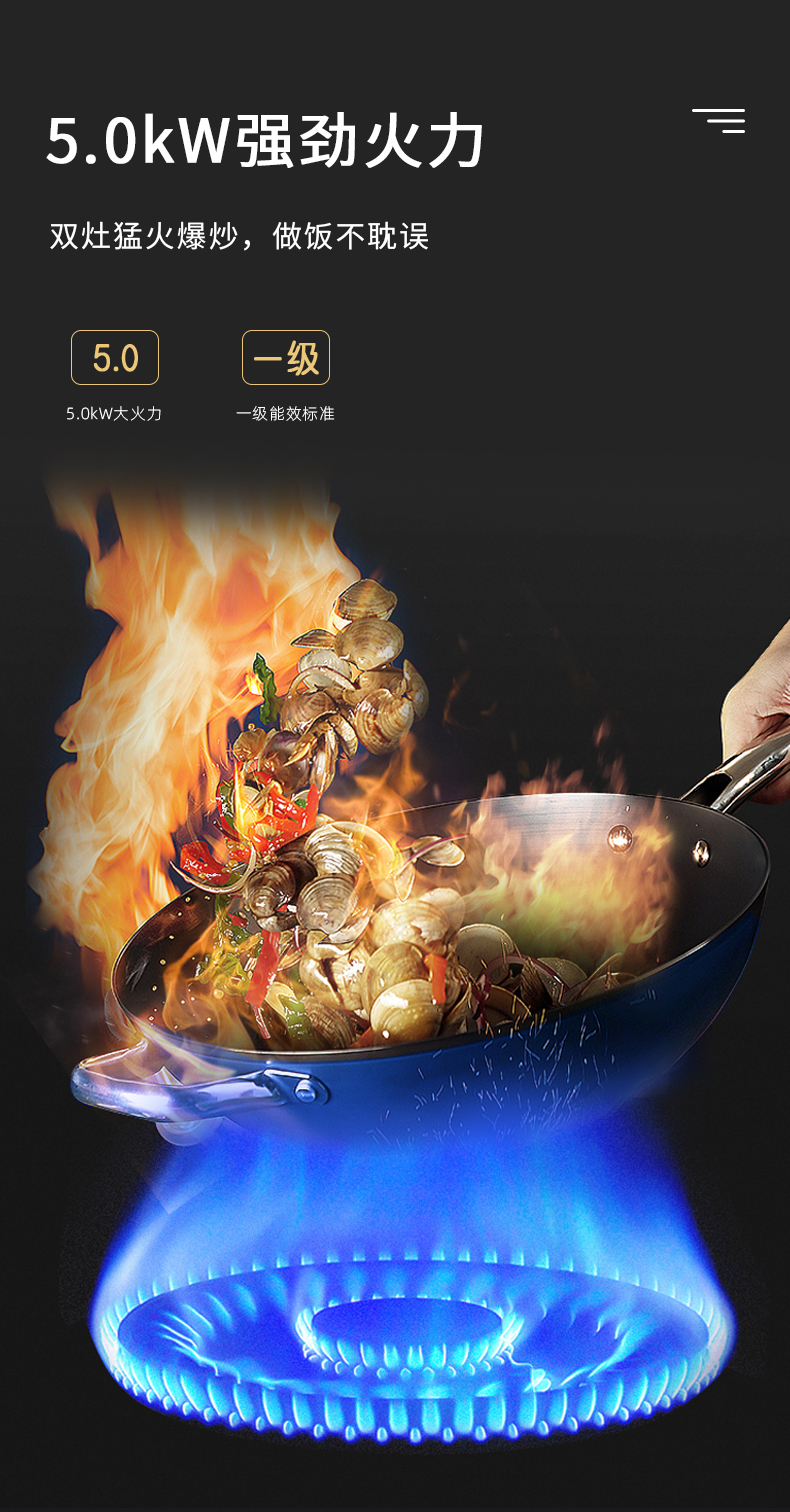 - 5.0kW強(qiáng)勁火力,雙灶猛火爆炒