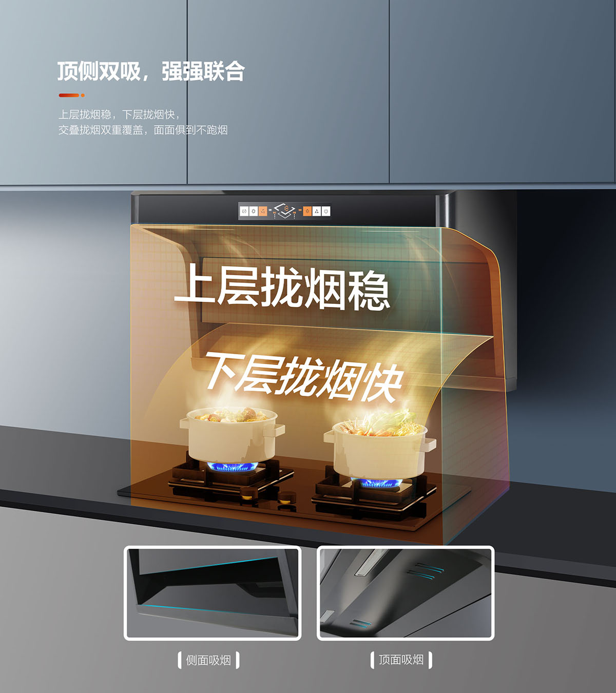 三檔吸力,輕松應(yīng)對各類油煙,專為中國廚房習(xí)慣爆炒量身定制