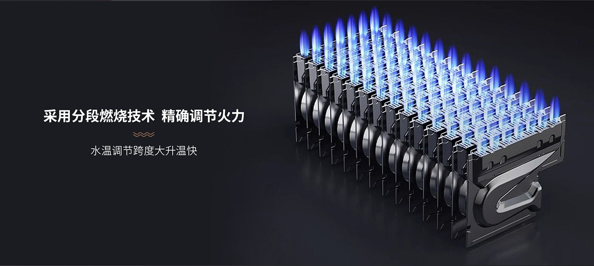 采⽤分段燃燒技術,⽔溫調節跨度大,升溫快