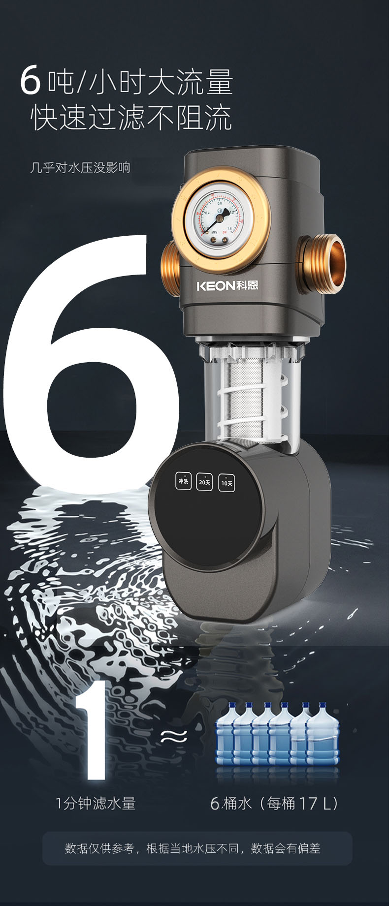 • 6噸/小時大流量,快速過濾,用水無壓力