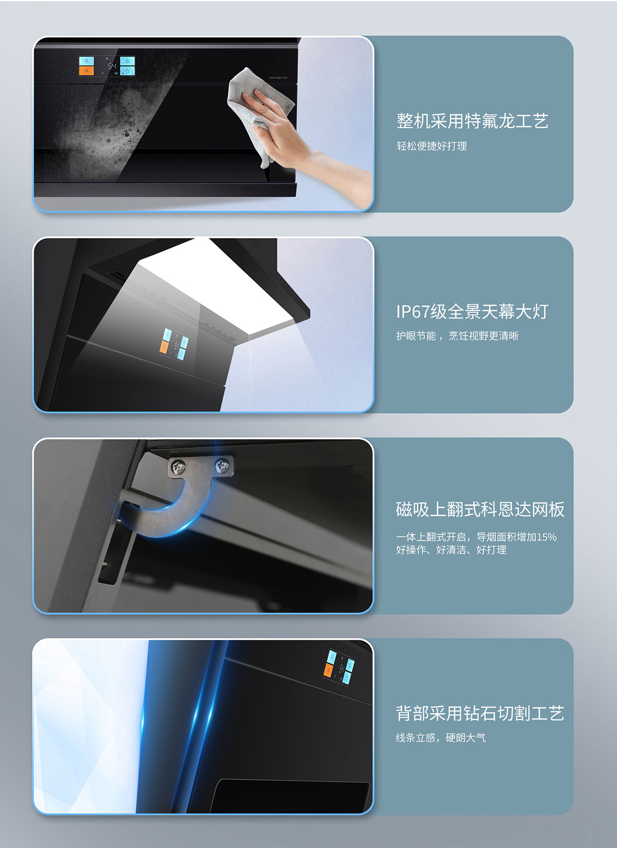 磁吸上翻式科恩達導煙板,減震防撞,清潔更便捷